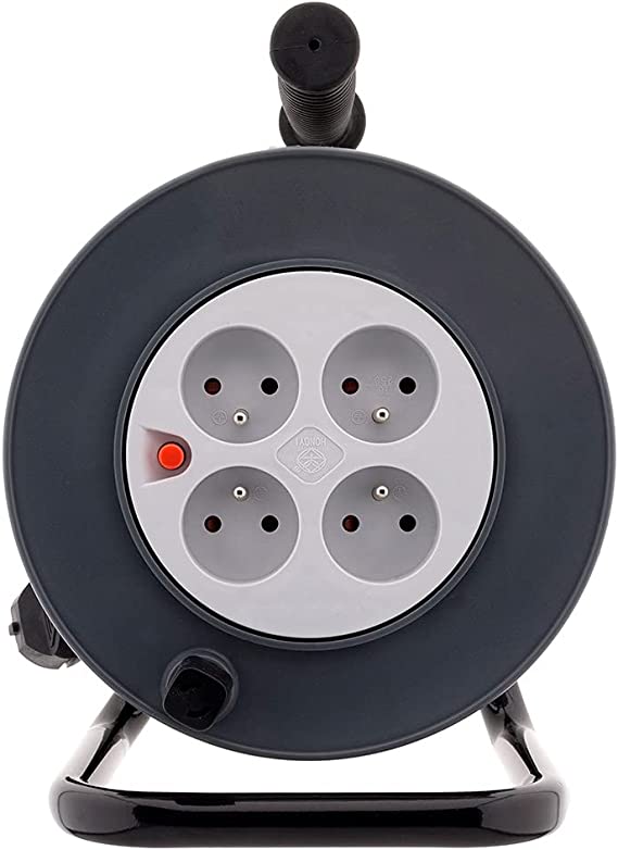 enrouleur de cable 20 m avec 4 multi prises et thermo fusible