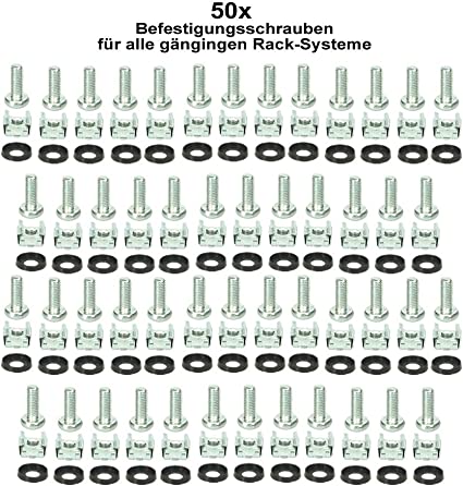 Lot de 50?vis de fixation 6?mm Avec rondelle et ?crou-cage Pour syst?mes d’armoire de rack de serveur 48,3 cm [19″]
